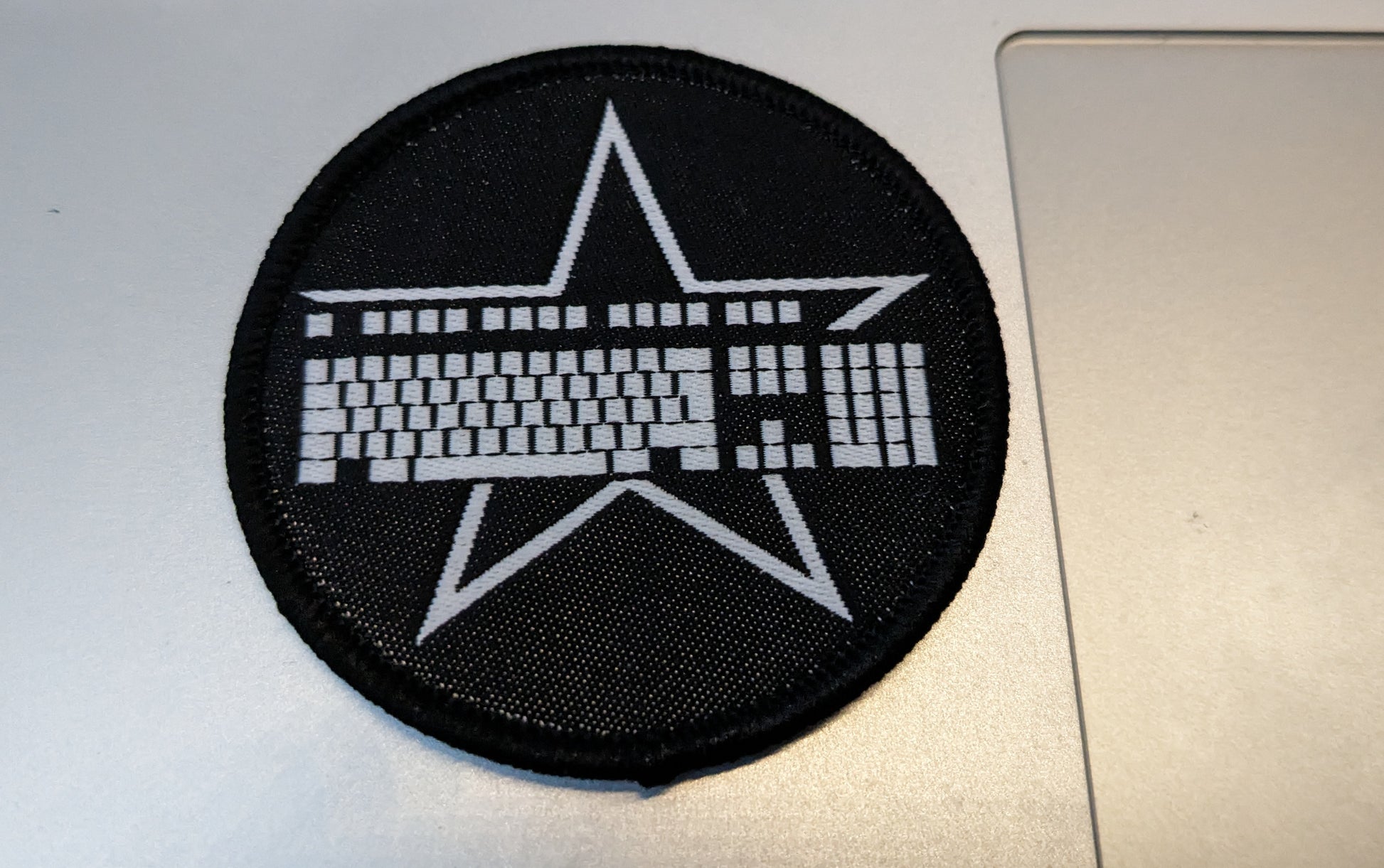 This textile patch has the iconic star surrounding a keyboard on it.