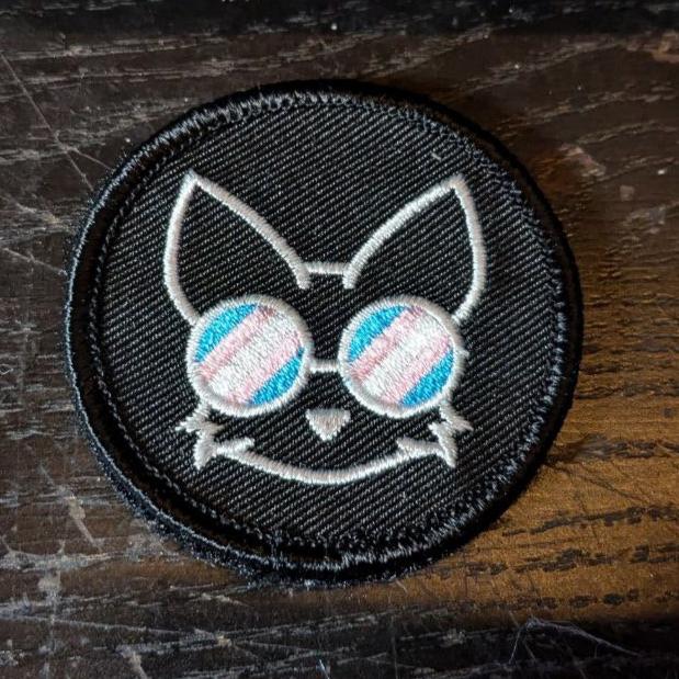 This embroidered patch is available as a "Black/White" or "Trans Pride" version.